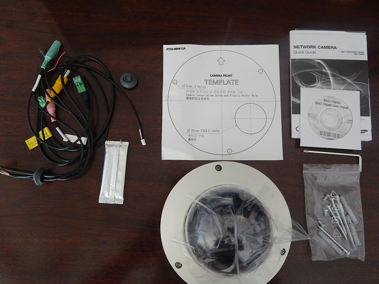 Upon unboxing, the camera looks very well built, and includes all the connectors, mounting screws, and torx bits to install and service the camera. The included documentation was sparse, but the full online document manual is on disk and also available online here. The installation hardware includes both an “L” shaped torx wrench and a torx bit for a drill for easier installation. The camera housing is aluminum metal, with a tough lexan material dome suitable for vandal resistant applications. The dimensions are Ø132.1 x 107.6mm (Ø5.2″ x 4.24″), weight is 575g (1.27Lbs). Electrical requirements are 24VAC/12VDC @ 10W or PoE (802.3af Class 3) @ 11W maximum. Operating temperature range is -10°C ~ +55°C (+14°F ~ +131°F) / Less than 90% RH.
